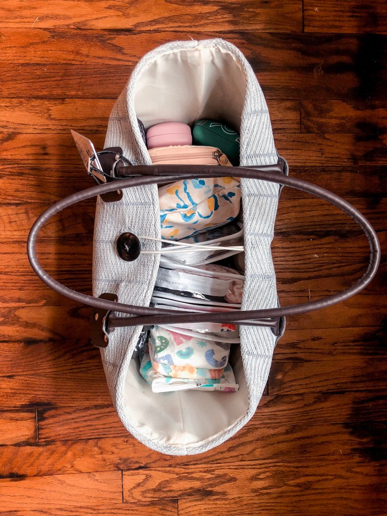 A large tote bag // I linked a more fashionable option, but if you’re going for maximum functionality, I’ve heard great things about this Land’s End canvas tote. They have lots of sizing options and you can personalize. Most of the time, moms will be carrying the diaper bag. But it’s nice to have something to easily transfer your things to when you’re leaving the baby with someone else.